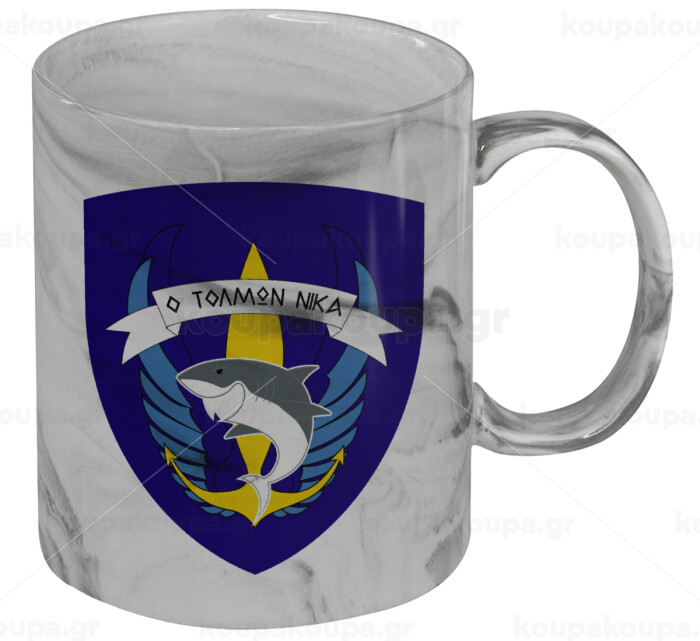 Ο τολμών νικά, καρχαρίας, Κούπα κεραμική, marble style (μάρμαρο), 330ml