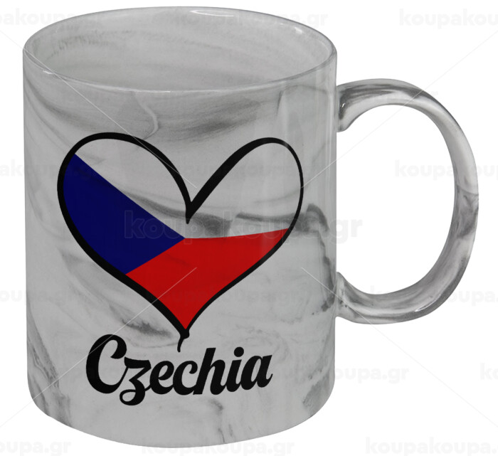 Czechia flag, Κούπα κεραμική, marble style (μάρμαρο), 330ml