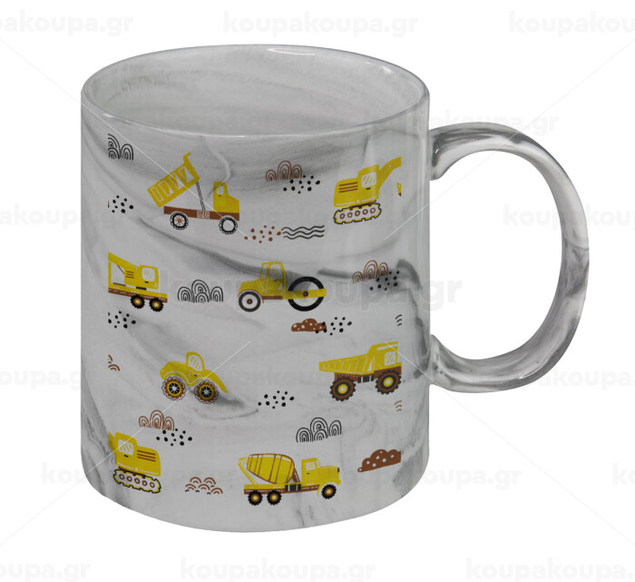Αμαξάκια φορτωτές και μπουλντόζες, Κούπα κεραμική, marble style (μάρμαρο), 330ml