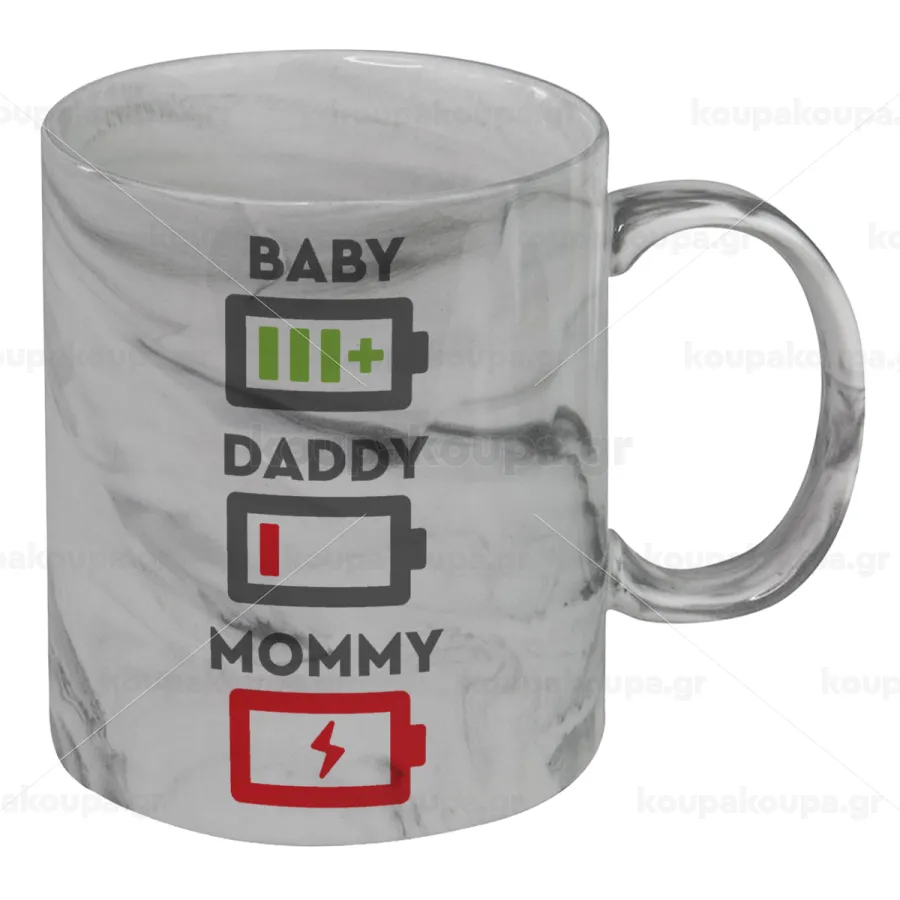 BABY, MOMMY, DADDY Low battery, Κούπα κεραμική, marble style (μάρμαρο), 330ml