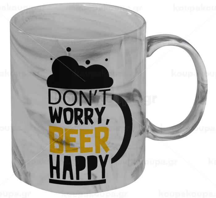 Don't worry BEER Happy, Κούπα κεραμική, marble style (μάρμαρο), 330ml