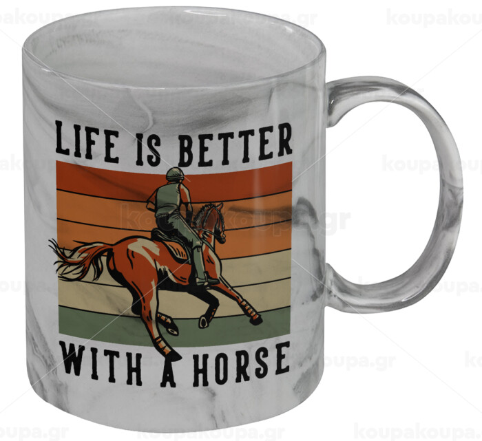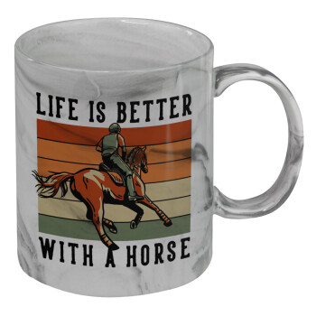 Life is Better with a Horse, Κούπα κεραμική, marble style (μάρμαρο), 330ml