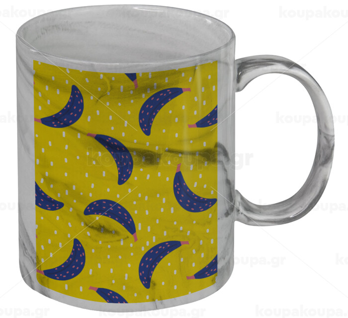 Yellow seamless with blue bananas, Κούπα κεραμική, marble style (μάρμαρο), 330ml