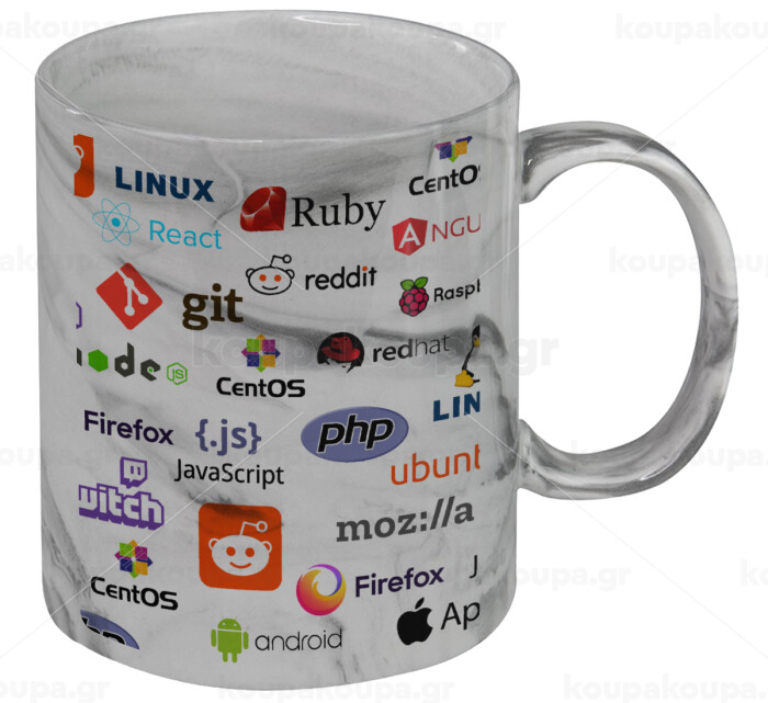 Tech logos, Κούπα κεραμική, marble style (μάρμαρο), 330ml