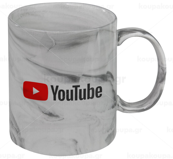 Youtube, Κούπα κεραμική, marble style (μάρμαρο), 330ml