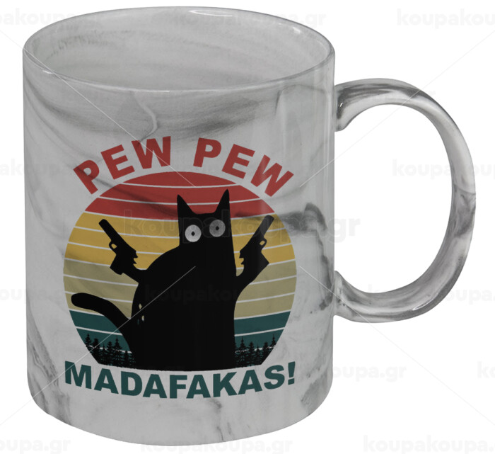 PEW PEW madafakas, Κούπα κεραμική, marble style (μάρμαρο), 330ml