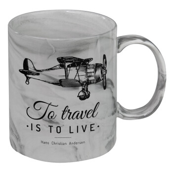 To travel is to live, Κούπα κεραμική, marble style (μάρμαρο), 330ml