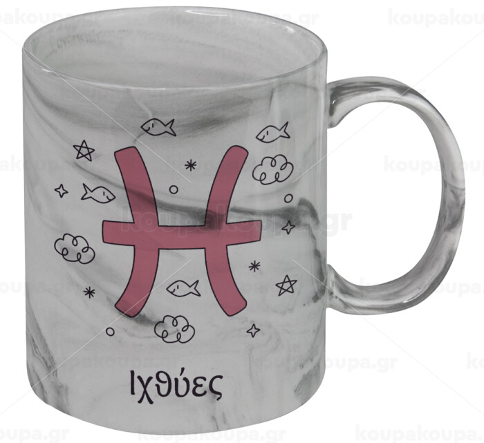 Ζώδια Ιχθύες, Κούπα κεραμική, marble style (μάρμαρο), 330ml