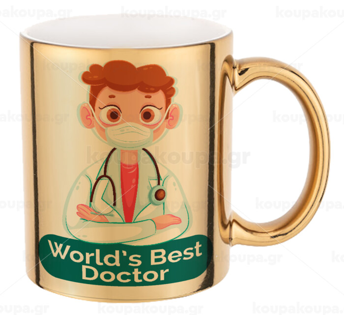 World's Best Doctor, Κούπα κεραμική, χρυσή καθρέπτης, 330ml