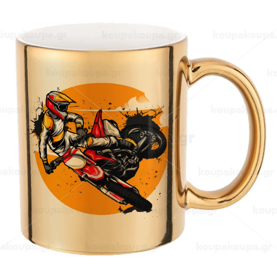 Motocross, Κούπα κεραμική, χρυσή καθρέπτης, 330ml