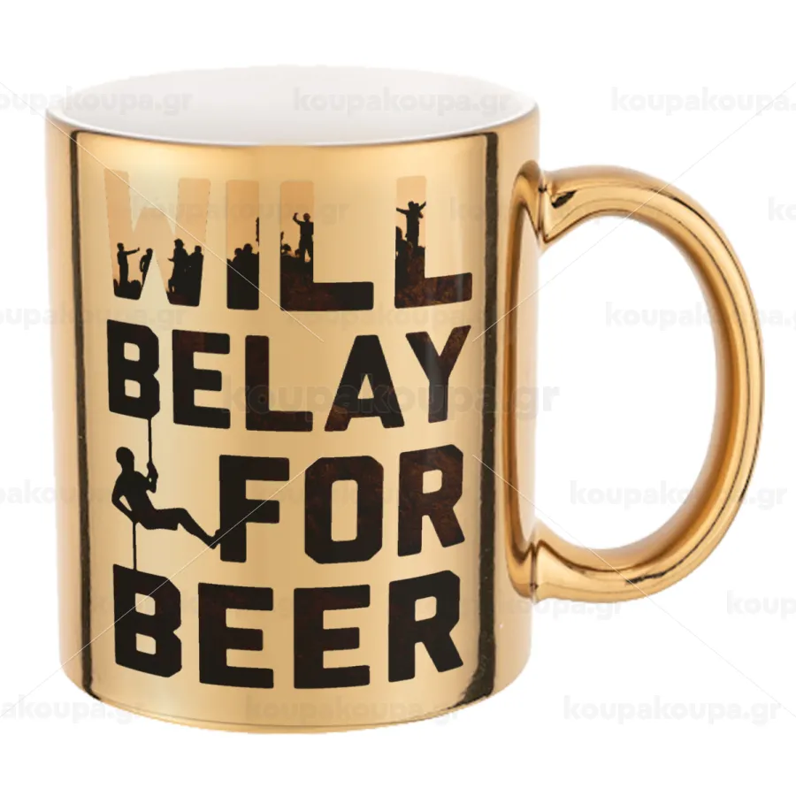 Will Belay For Beer, Κούπα κεραμική, χρυσή καθρέπτης, 330ml
