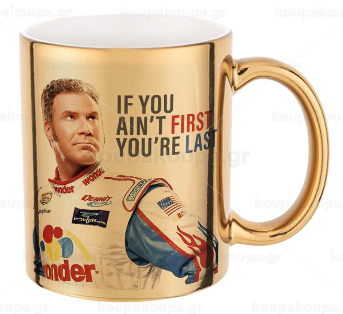 If You Ain't First You're Last Ricky Bobby, Talladega Nights, Κούπα κεραμική, χρυσή καθρέπτης, 330ml