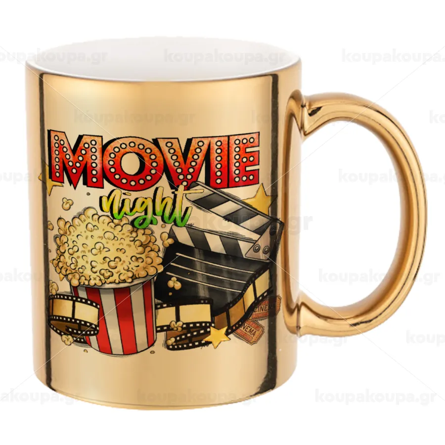 Movie night, Κούπα κεραμική, χρυσή καθρέπτης, 330ml