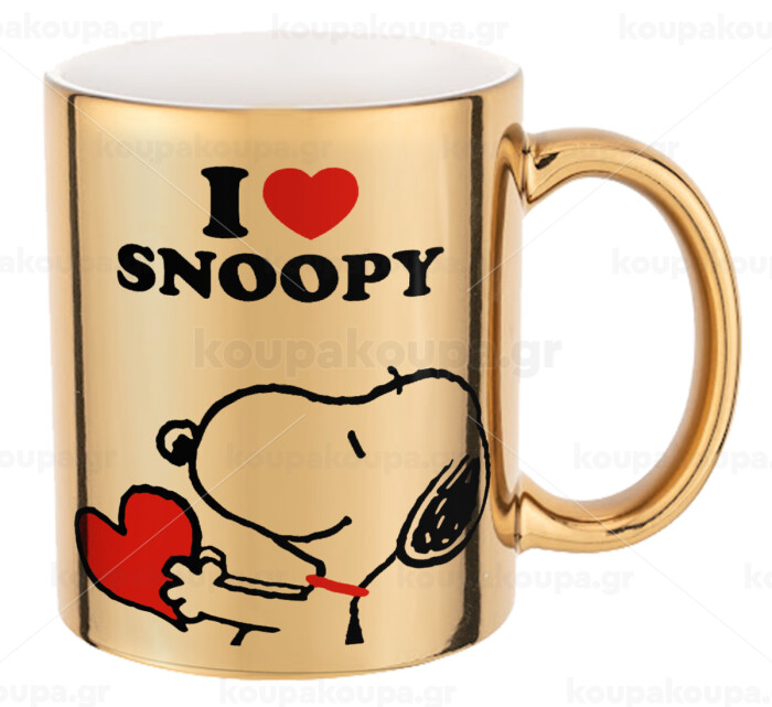 I LOVE SNOOPY, Κούπα κεραμική, χρυσή καθρέπτης, 330ml