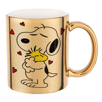 Snoopy Love, Κούπα κεραμική, χρυσή καθρέπτης, 330ml