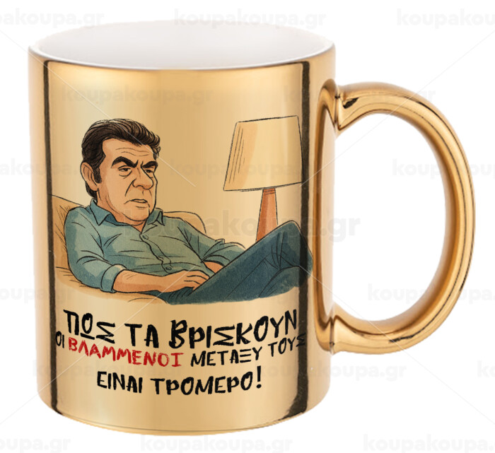 ΠΩΣ ΤΑ ΒΡΙΣΚΟΥΝ ΟΙ ΒΛΑ....ΝΟΙ ΜΕΤΑΞΥ ΤΟΥΣ, ΕΙΝΑΙ ΤΡΟΜΕΡΟ!!!, Κούπα κεραμική, χρυσή καθρέπτης, 330ml