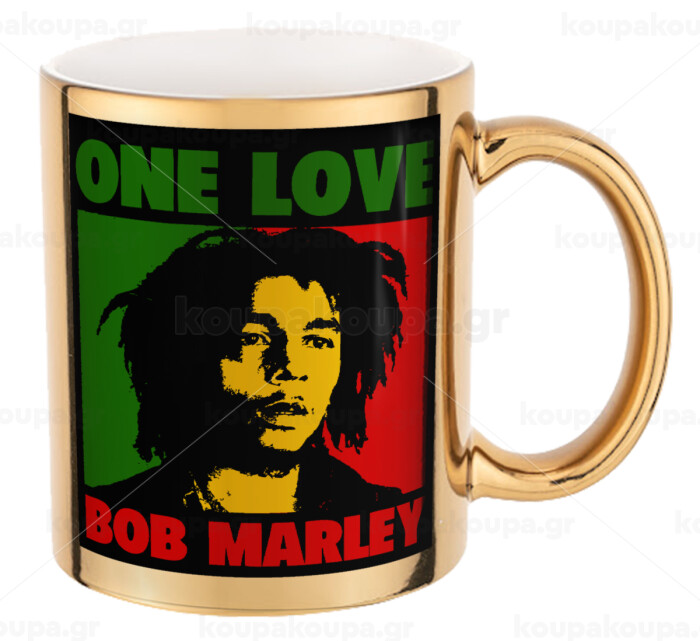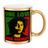 Bob marley, one love, Κούπα κεραμική, χρυσή καθρέπτης, 330ml