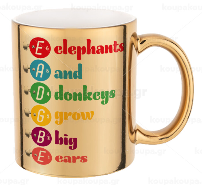 Elephants And Donkeys Grow Big Ears, Κούπα κεραμική, χρυσή καθρέπτης, 330ml