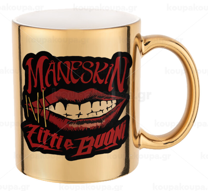 Maneskin lips, Κούπα κεραμική, χρυσή καθρέπτης, 330ml