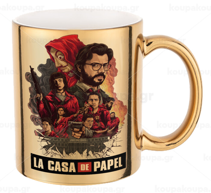 La casa de papel drawing cover, Κούπα κεραμική, χρυσή καθρέπτης, 330ml