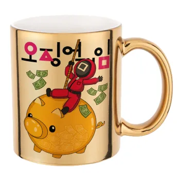 Squid game money pig, Κούπα κεραμική, χρυσή καθρέπτης, 330ml