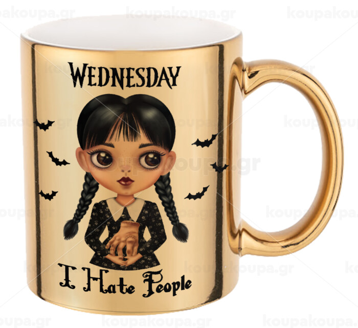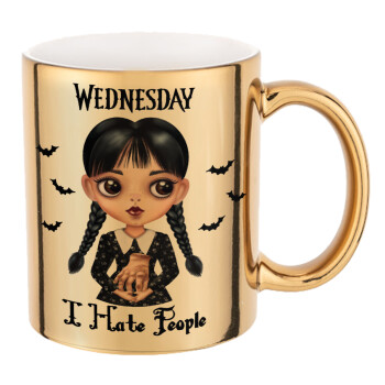 Wednesday Adams, i hate people, Κούπα κεραμική, χρυσή καθρέπτης, 330ml