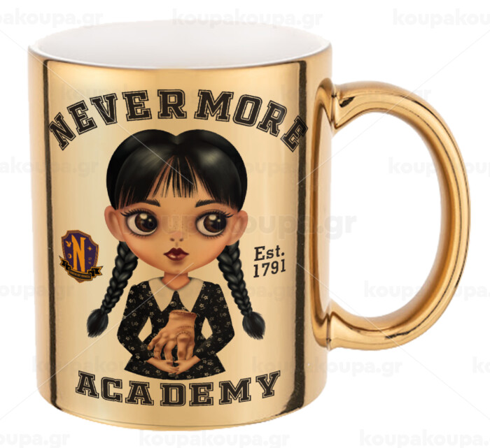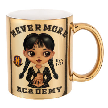 Wednesday Adams, nevermore, Κούπα κεραμική, χρυσή καθρέπτης, 330ml