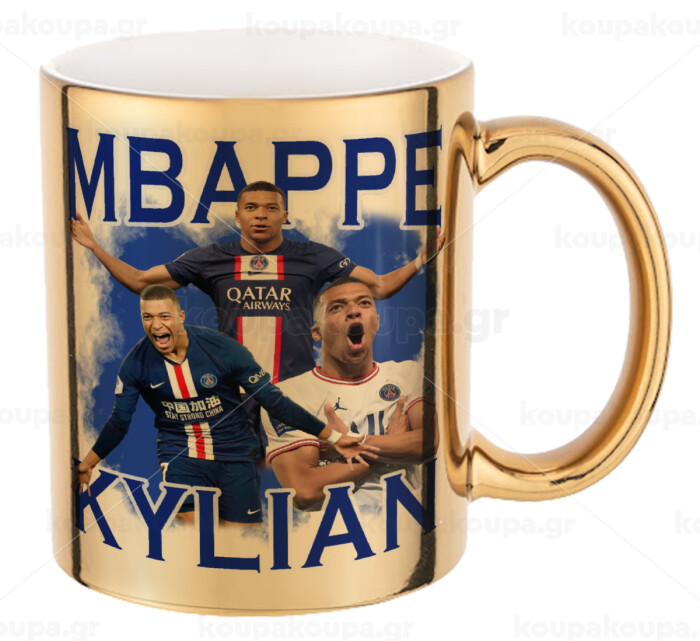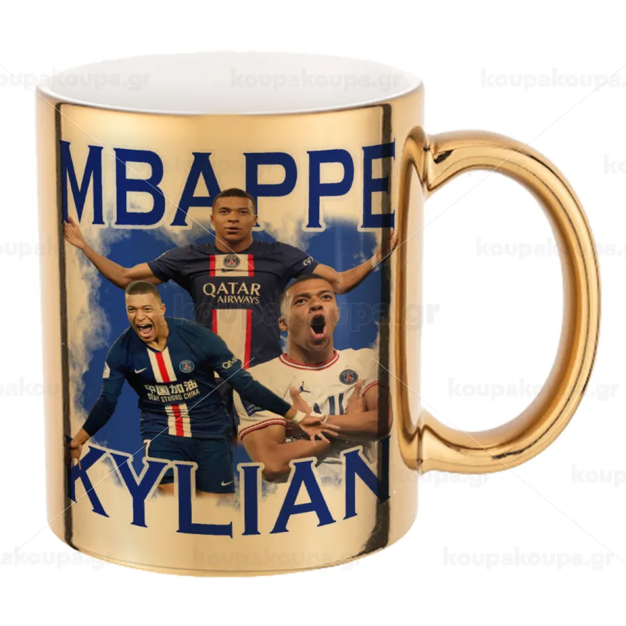 Kylian mbappe, Κούπα κεραμική, χρυσή καθρέπτης, 330ml