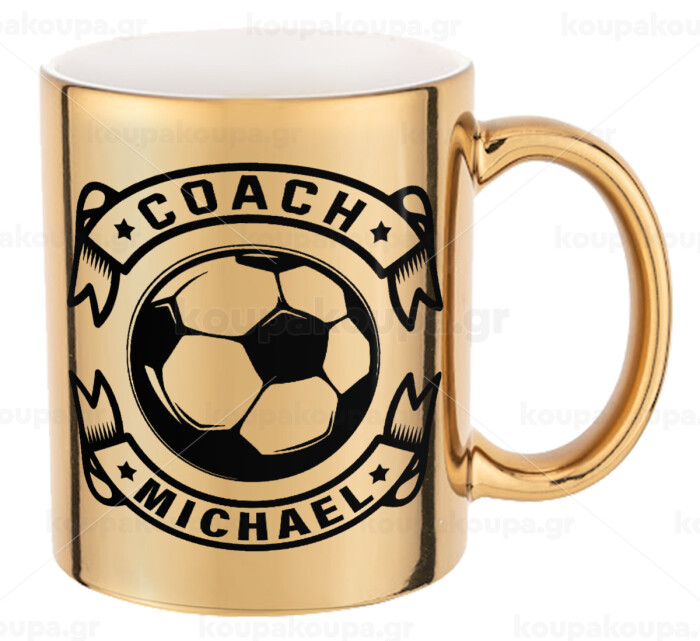Soccer coach, Κούπα κεραμική, χρυσή καθρέπτης, 330ml