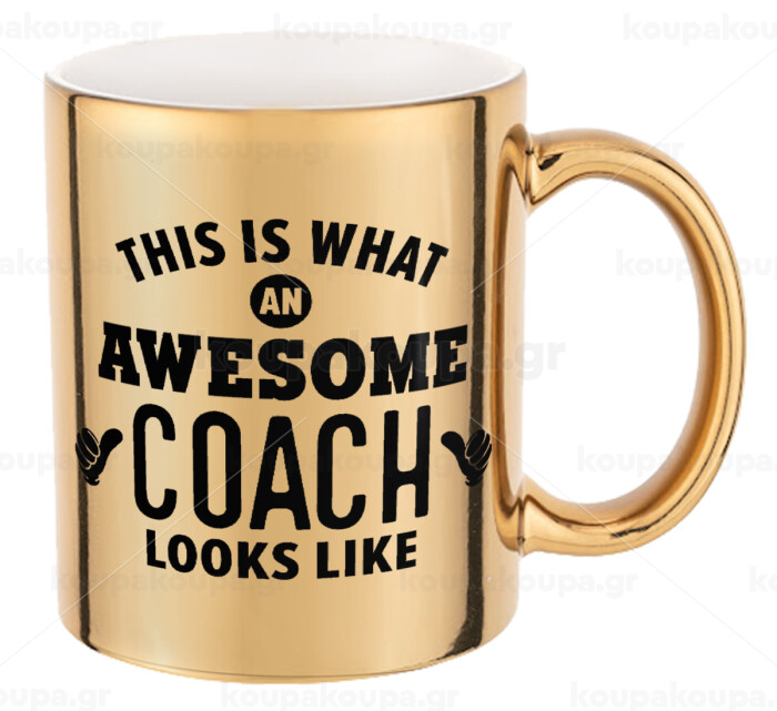 This is what an awesome COACH looks like!, Κούπα κεραμική, χρυσή καθρέπτης, 330ml