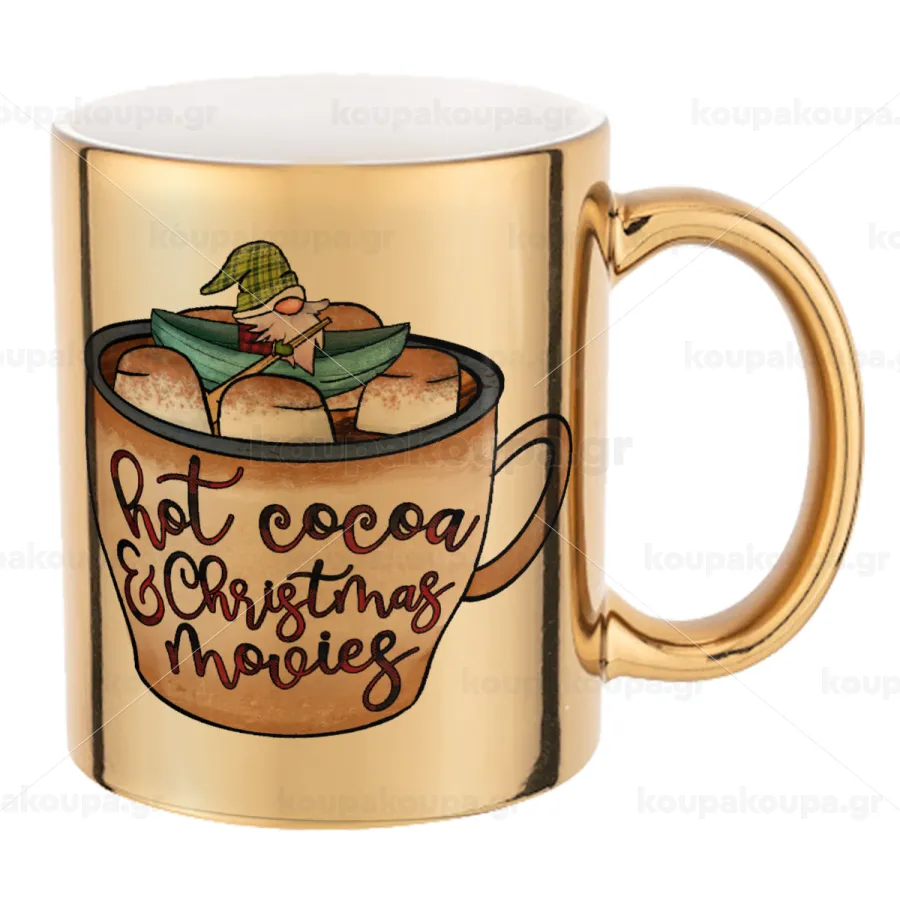 Hot Cocoa And Christmas Movies, Κούπα κεραμική, χρυσή καθρέπτης, 330ml