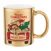 Merry Christmas cats in car, Κούπα κεραμική, χρυσή καθρέπτης, 330ml