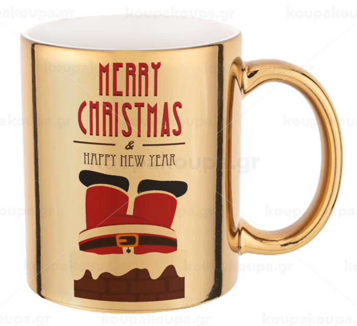 Merry christmas chimney, Κούπα κεραμική, χρυσή καθρέπτης, 330ml