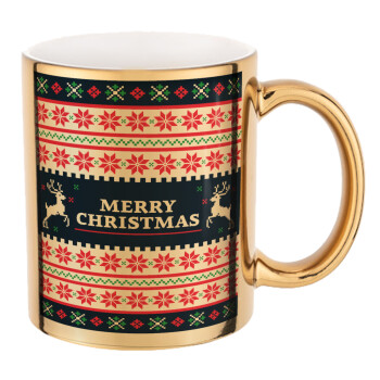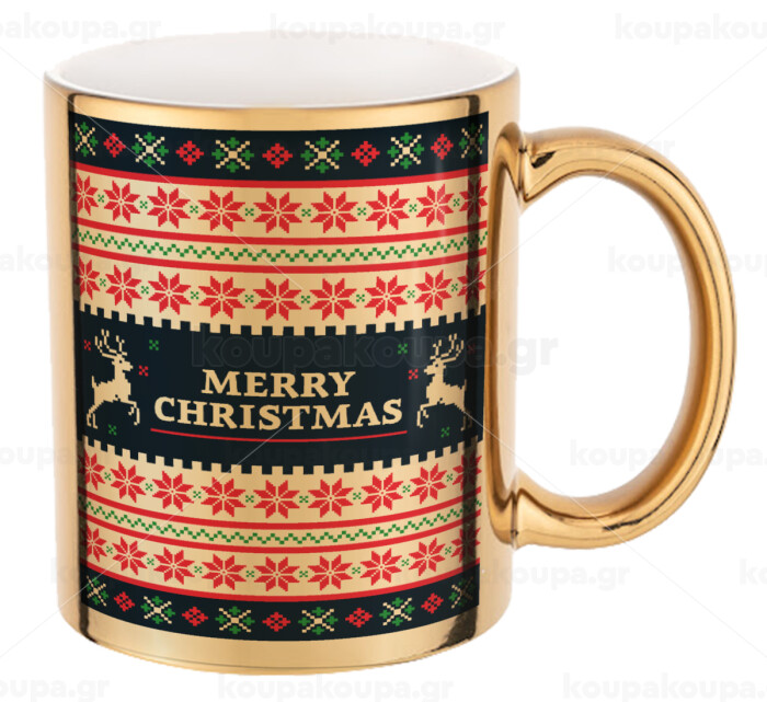 Merry Christmas Vintage, Κούπα κεραμική, χρυσή καθρέπτης, 330ml