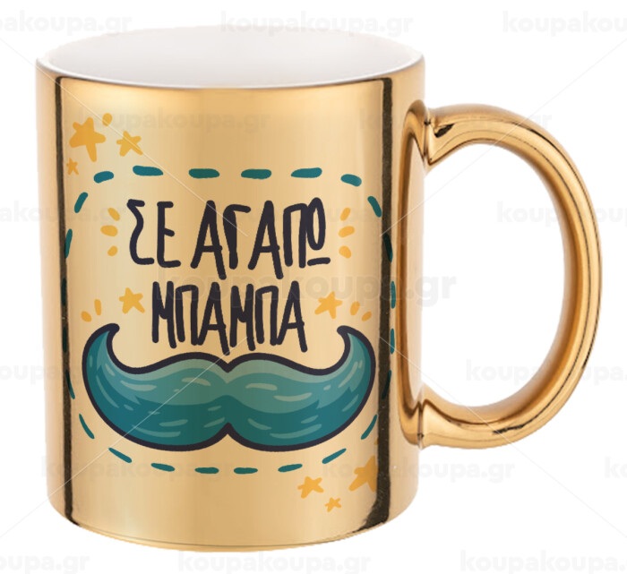 Σε αγαπώ μπαμπά!!!, Κούπα κεραμική, χρυσή καθρέπτης, 330ml