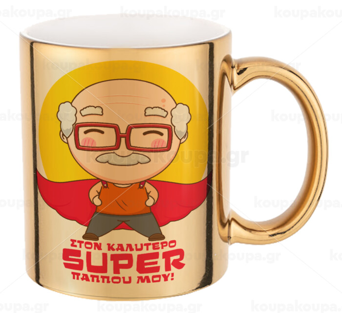 Στον καλύτερο Super παππού μου!, Κούπα κεραμική, χρυσή καθρέπτης, 330ml