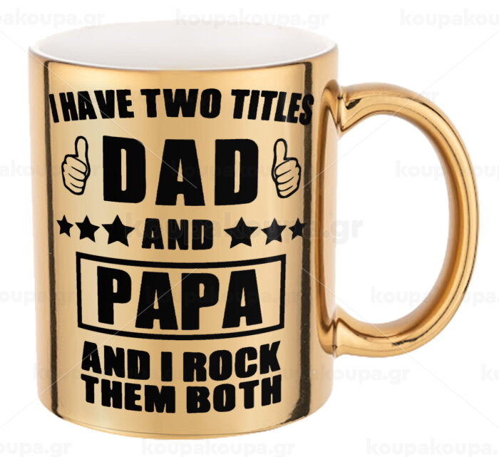 I have two title, DAD & PAPA, Κούπα κεραμική, χρυσή καθρέπτης, 330ml