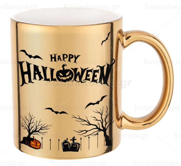 Happy Halloween cemetery, Κούπα κεραμική, χρυσή καθρέπτης, 330ml