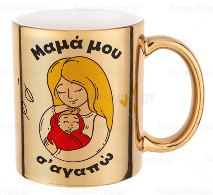 Μανούλα σ'αγαπώ αγκαλιά!, Κούπα κεραμική, χρυσή καθρέπτης, 330ml