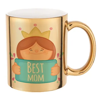 Best mom Princess, Κούπα κεραμική, χρυσή καθρέπτης, 330ml