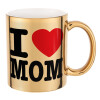 I LOVE MOM, Κούπα κεραμική, χρυσή καθρέπτης, 330ml