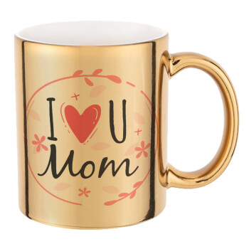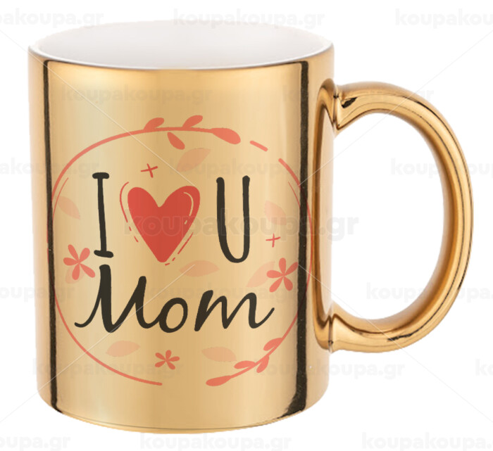 I Love you Mom pink, Κούπα κεραμική, χρυσή καθρέπτης, 330ml