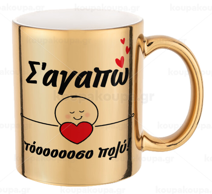 Σ΄αγαπώ τόοοοσο πολύ (Κορίτσι)!!!, Κούπα κεραμική, χρυσή καθρέπτης, 330ml