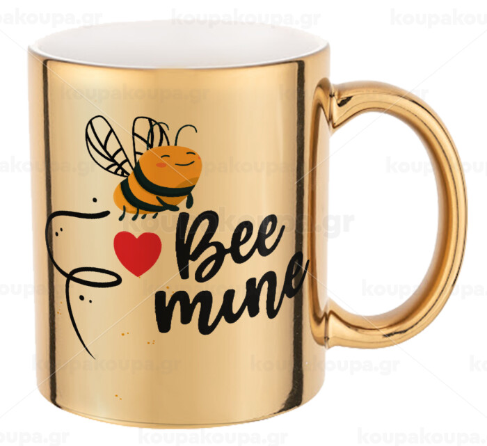 Bee mine!!!, Κούπα κεραμική, χρυσή καθρέπτης, 330ml