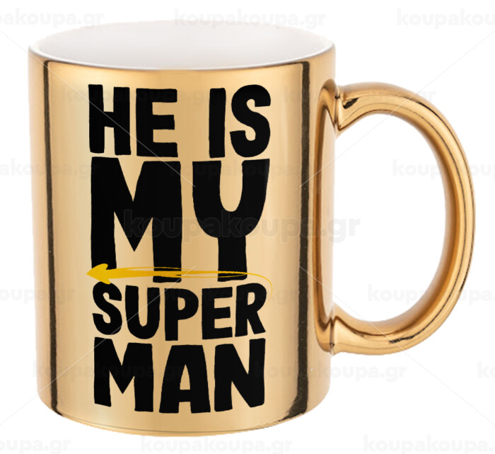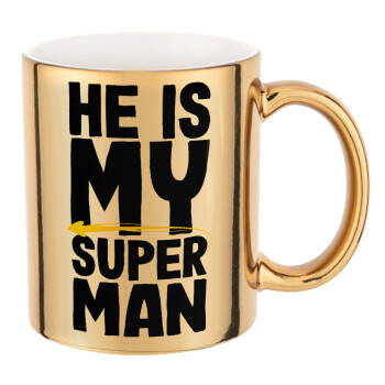 He is my superman, Κούπα κεραμική, χρυσή καθρέπτης, 330ml