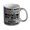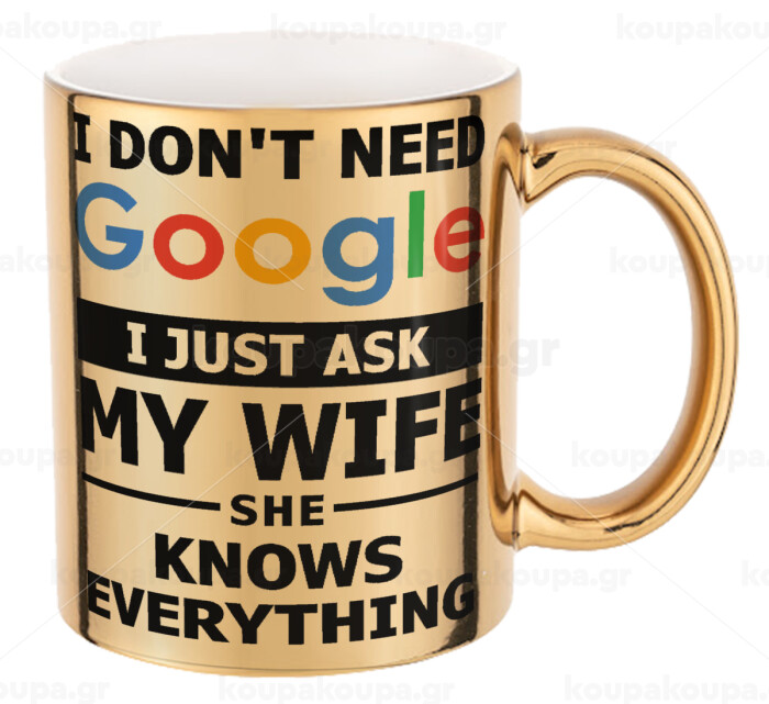 I don't need Google, just ask my WIFE, Κούπα κεραμική, χρυσή καθρέπτης, 330ml