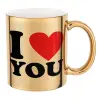 I LOVE YOU, Κούπα κεραμική, χρυσή καθρέπτης, 330ml