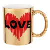 I Love You red heart, Κούπα κεραμική, χρυσή καθρέπτης, 330ml