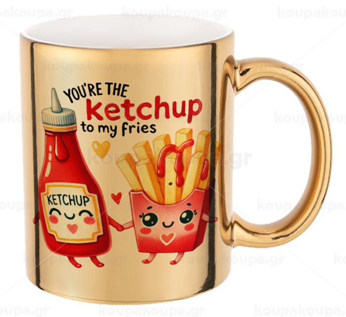 Ketchup To My Fries, Κούπα κεραμική, χρυσή καθρέπτης, 330ml