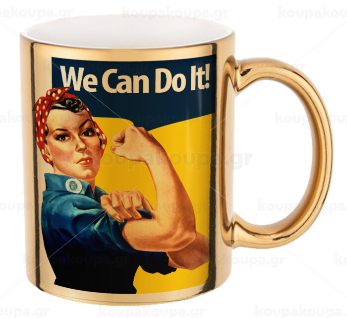 Rosie we can do it!, Κούπα κεραμική, χρυσή καθρέπτης, 330ml